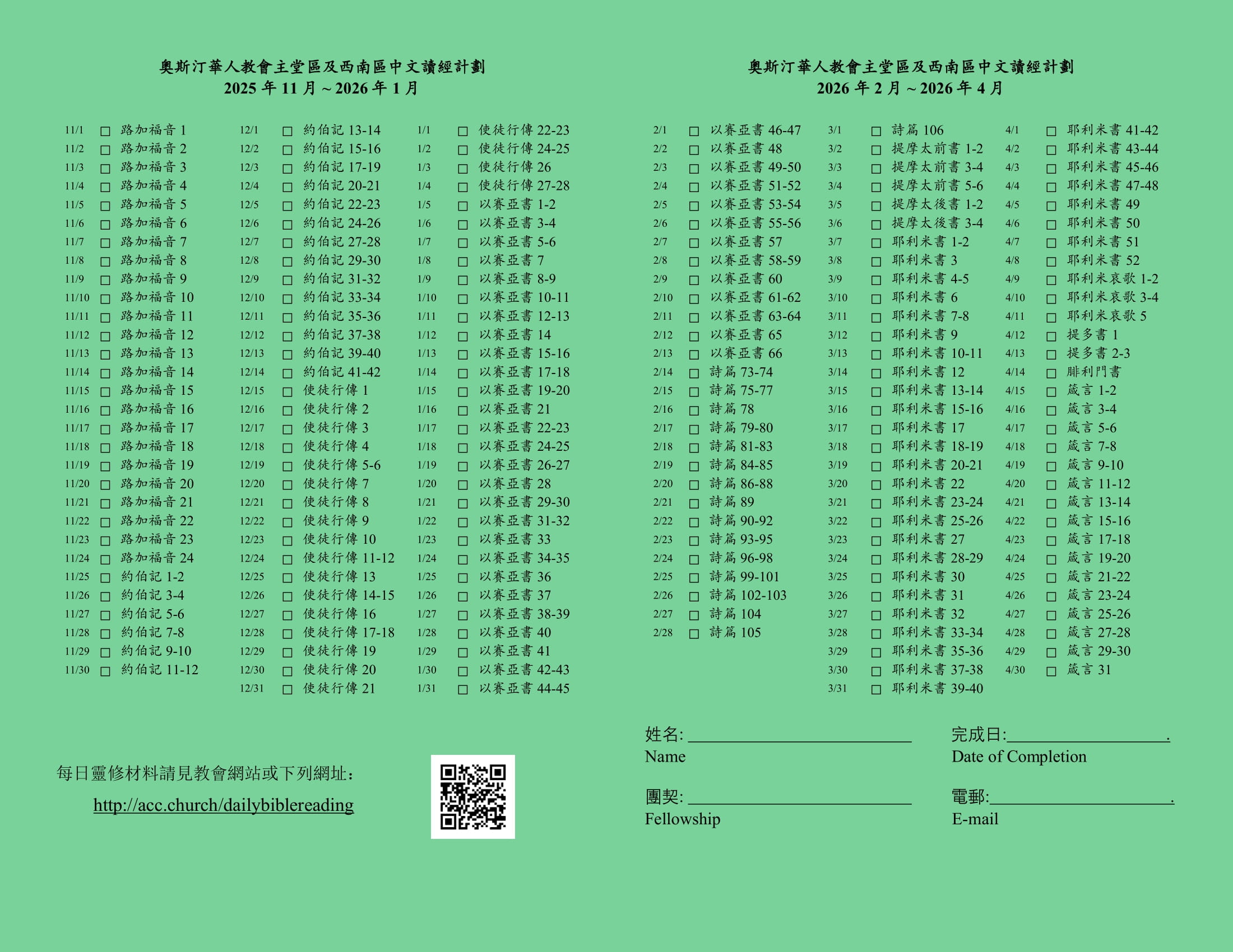 ACC "兩年讀經計畫- 每日靈修" 材料下載
